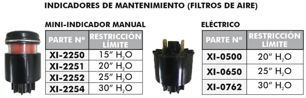 Es una muy buena práctica la utilización de un indicador de restricción. Este acusará el momento preciso de cambio de filtros/mantenimiento.