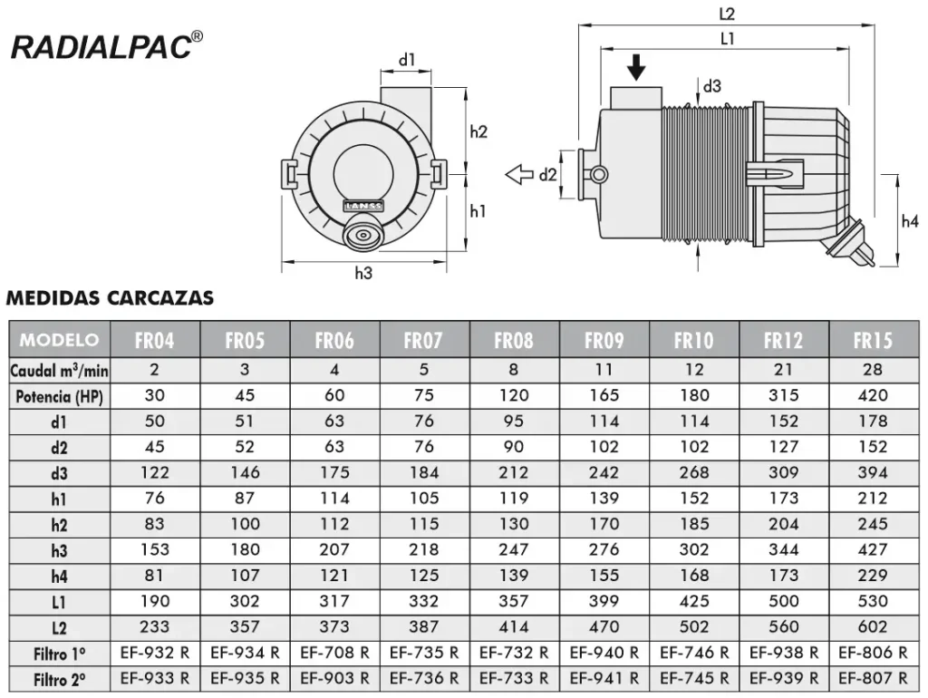 Las carcazas para aire LANSS® son productos de gran robustez. Se presentan en una amplia gama de medidas según el caudal de aire requerido en la admisión del motor. Todas las carcazas LANSS® portan filtros primario y secundario (o de seguridad) LANSS®.