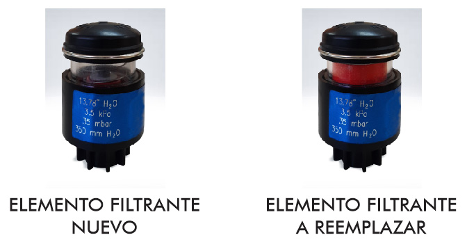 Este instrumento irá indicando los niveles de contaminación desde su posición inicial (filtro limpio) hasta cubrirse con una señal roja (reemplazo del filtro), evitando la manipulación innecesaria de los filtros.